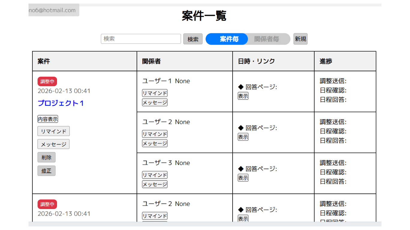 基本的な操作は、案件作成→日程作成→リンク送信→日程確定というシンプルな流れです。