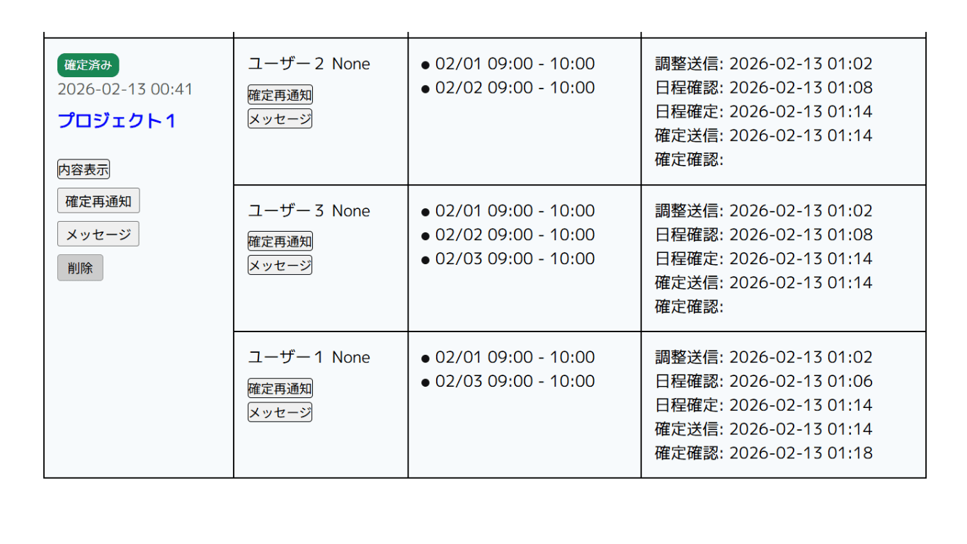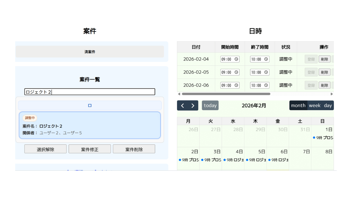 操作に慣れれば、複数案件・複数人が絡む複雑な日程調整も、迷わずスムーズに管理できます。